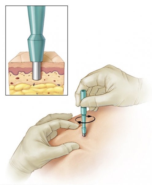 Dəri həkimi dəri biopsiyası götürmədən öncə müvafiq dəri nahiyyəsi tam keyləşdirilir və tək bir iynə ilə biopsiya materialı götürülür və pasient heç bir ağrı və ya başqa narahatlıq hiss etmir. Toxuma parçası bir neçə mm ölçülərdə olan “punch” adı verilən xüsusi bir alət ilə alındığı zaman tikiş atılmasına ehtiyac qalmır və dəri təbii bir şəkildə qısa müddətə özü sağalır.